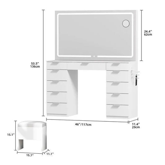 Coiffeuse HomeLova | Grand Miroir LED, Prises Intégrées
