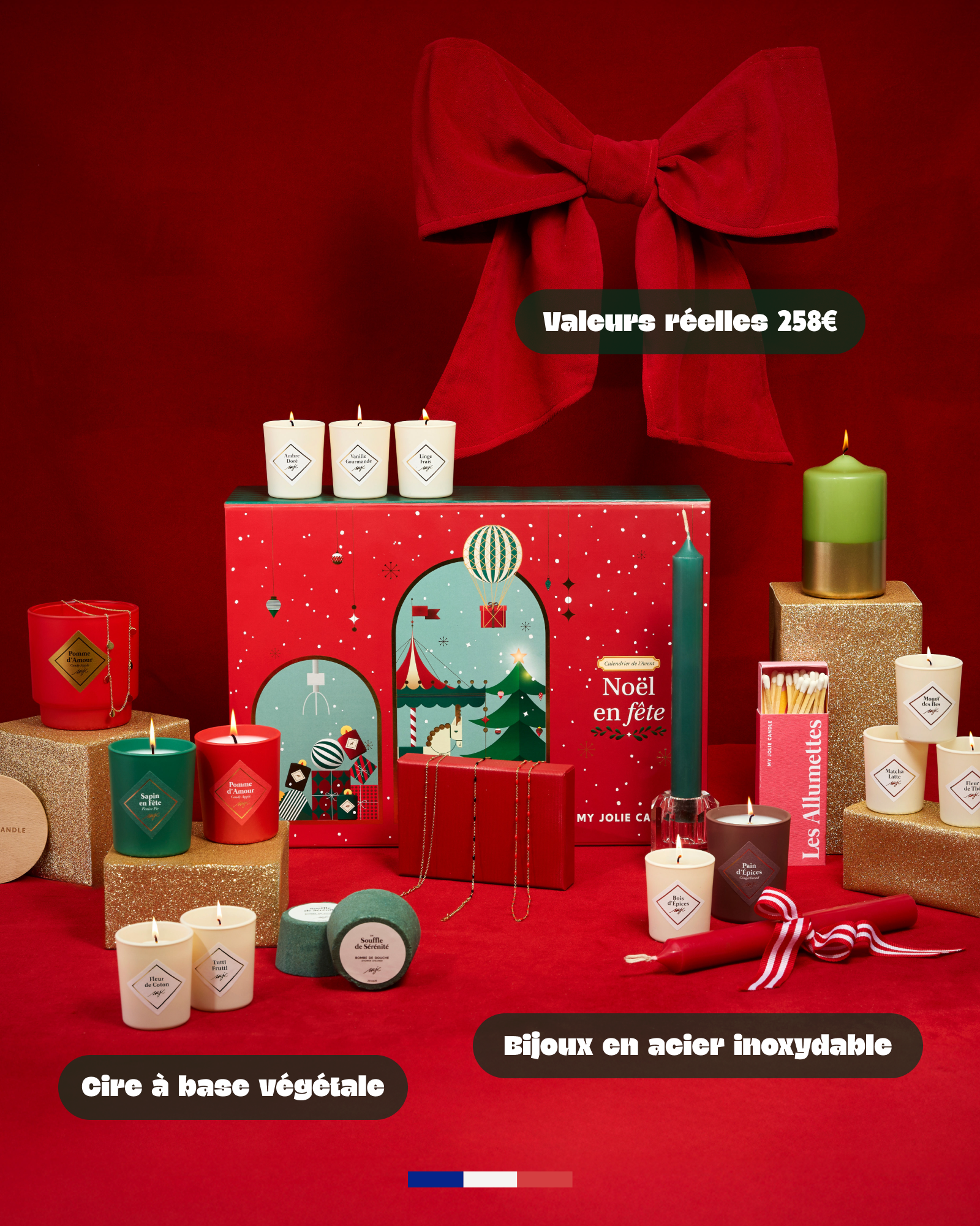 Découvrez 24 produits variés : bougies 30g, bougies bijoux, bijoux (colliers, bracelets), accessoires (coupe-mèche) et bombes de douche. C'est une sélection complète de l'univers My Jolie Candle, pensée pour vous faire plaisir et prolonger la magie bien après les fêtes.